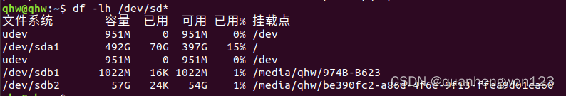 - 2.将TF卡接入到ubuntu,再次使用df命令,进行查看,多出来的设备即是TF卡挂载到ubuntu的设备名称