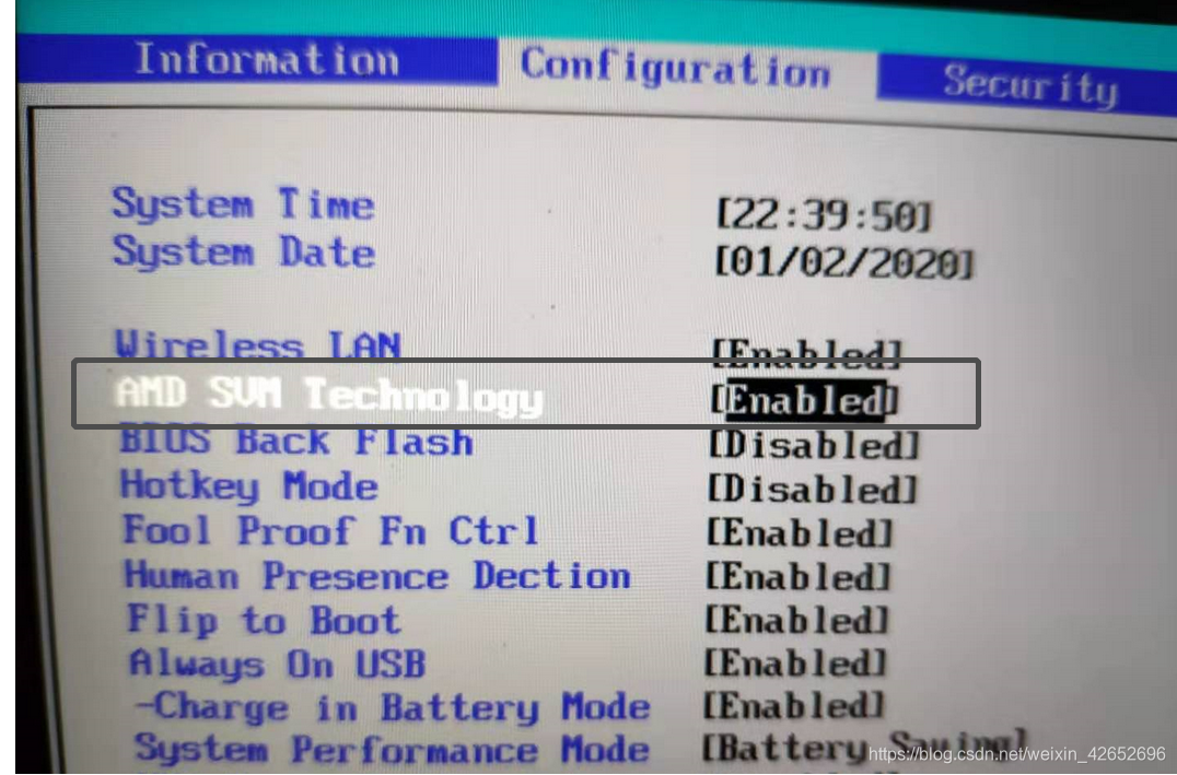 2.查询到可能是电脑没有开启虚拟化技术,于是重启电脑,我的电脑是联想小新,按F2进入的BIOS,然后如图