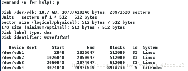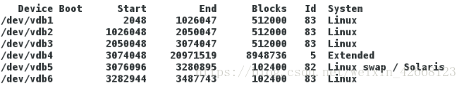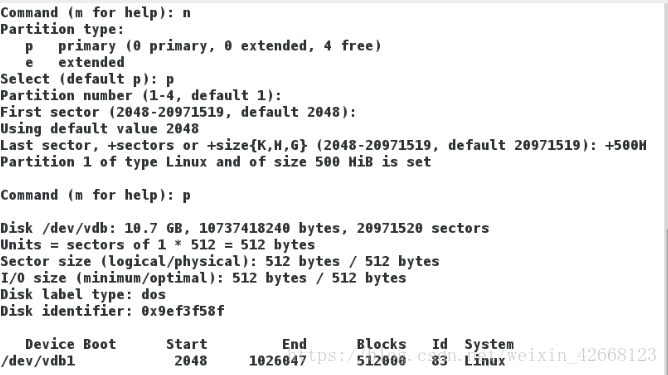 /dev/vdb1 2048 1026047 512000 83 Linux