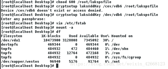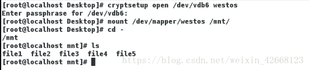 cryptsetup open /dev/vdb6 westos #打开加密的分区