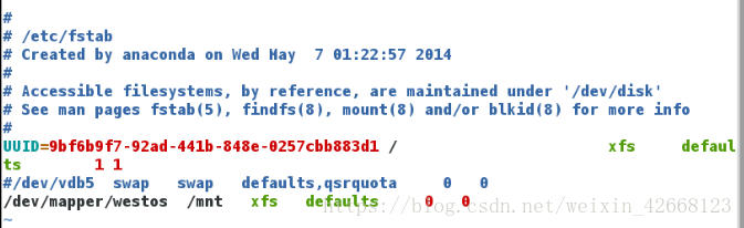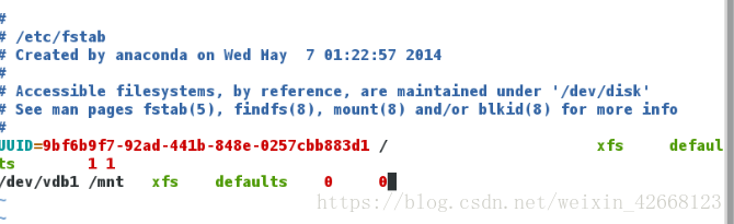 vim /etc/fstab ##开机自动挂载(编写这个文件)