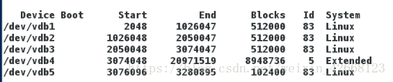 vdb1~vdb3的主分区,vdb4的扩展分区
