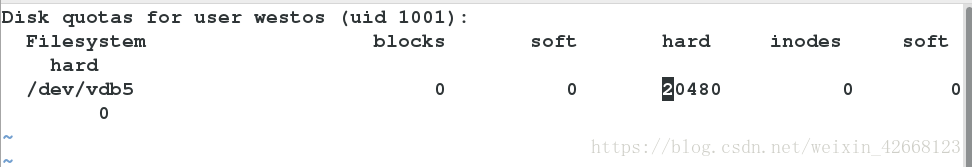 mount -o usrquota,grpquota /dev/vdb5 /mnt #挂载,加上配额参数打开,默认是关闭的,加-o