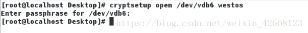 cryptsetup open /dev/vdb6 westos ##打开加密的分区