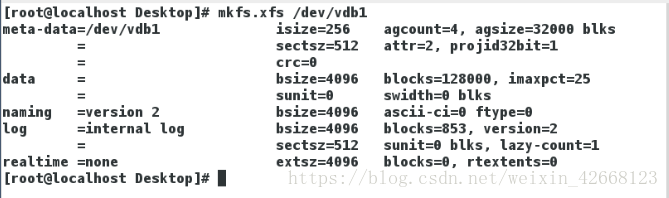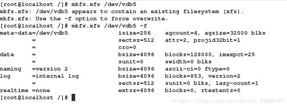 mkfs.xfs /dev/vdb1 -f #强制格式化