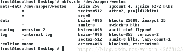 mkfs.xfs /dev/mapper/westos #格式化分区为xfs格式