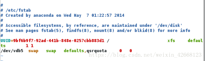 /dev/vdb5 swap swap defaults,qsrquota 0 0