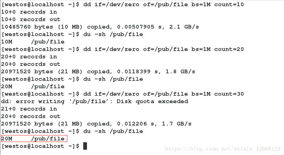 dd if=/dev/zero of=/pub/file bs=1M count=20