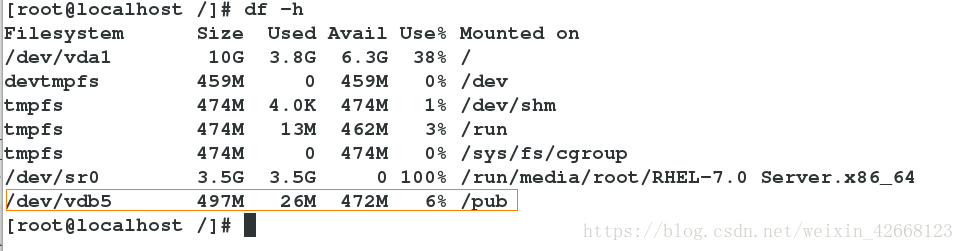 reboot 之后,输入 df 命令来查看是否是开机自动挂载