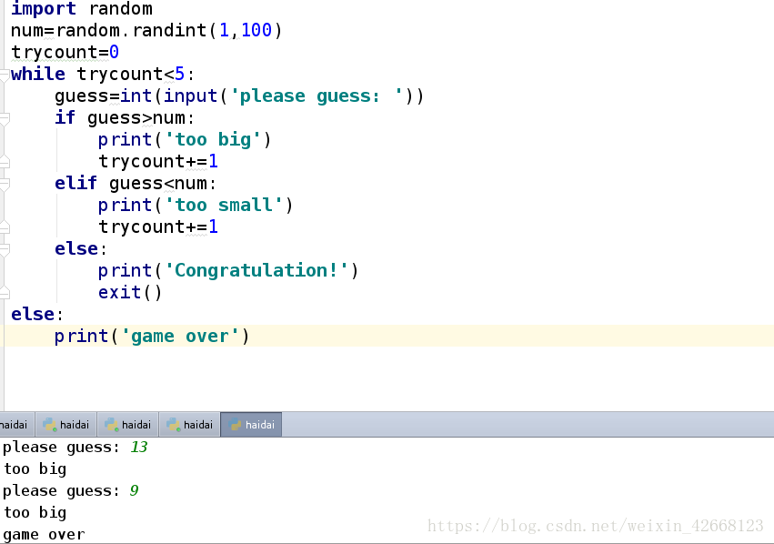 3. 如果用户猜测的数字大于系统给出的数字,打印“too big”;