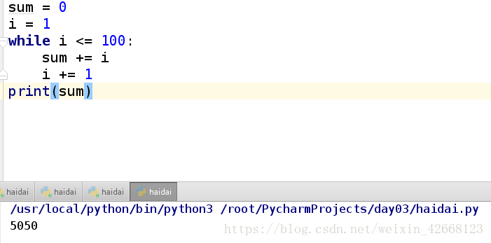 continue:跳出本次循环, continue后面的代码不再执行, 但是还会继续循环;