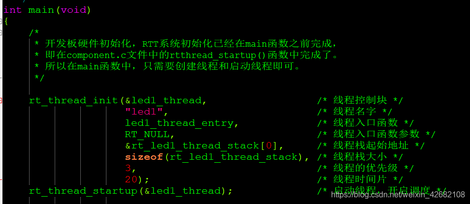 (1)这是主函数中的全部代码,主要是创建一个led线程并启动。