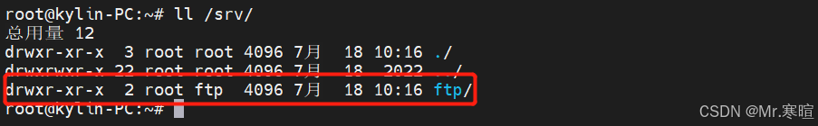 装完ftp服务可以看到默认在srv下面建立一个ftp文件夹