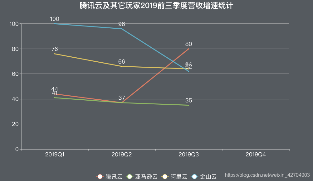 再结合几大云计算厂商在今年前三季度的增长情况来看。在前三季度中,腾讯云季度同比增长分别达到44%、37%和80%,同期亚马逊AWS的增长速度为41%、37%和35%,阿里云的增长速度为76%、66%和64%。腾讯云是唯一一家没有出现增长下滑的云厂商,但是考虑到腾讯云仅仅披露了Q3数据,所以腾讯云的实际增长情况也可能与其它厂商一样,存在增长下滑的可能。