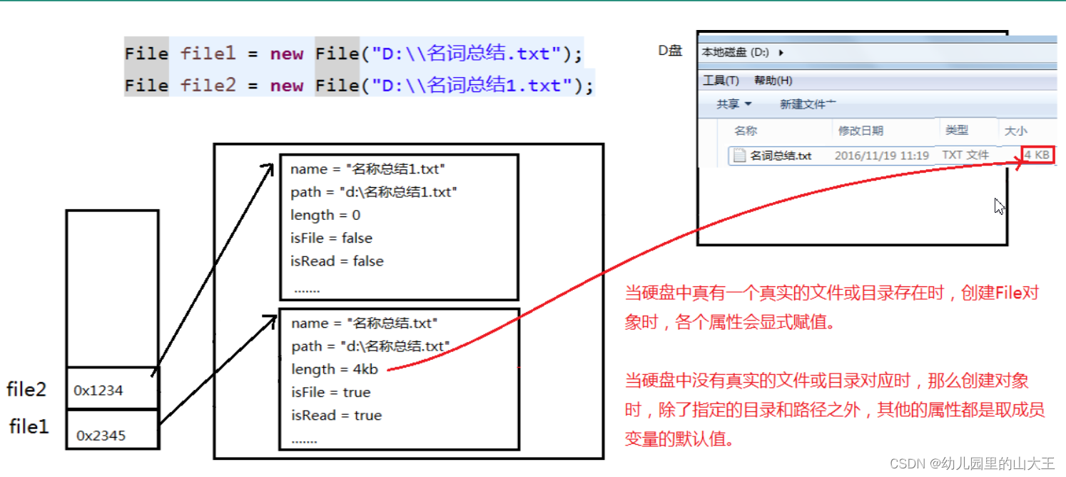 程序中的一个File对象,可能没有一个真实存在的文件或目录(也就是程序中有File对象,但对应的文件路径没有或者文件没有)。