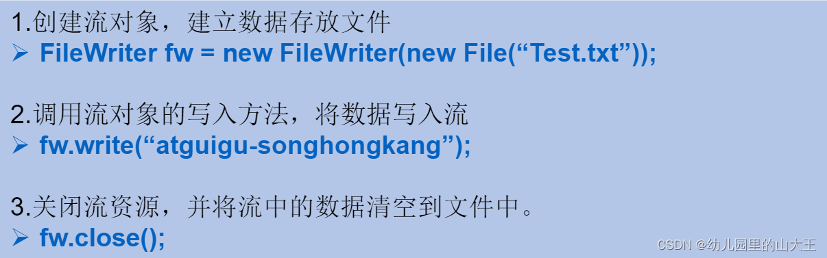 2、因为字符流直接以字符作为操作单位,所以Writer可以用字符串来替换字符数组,即以
