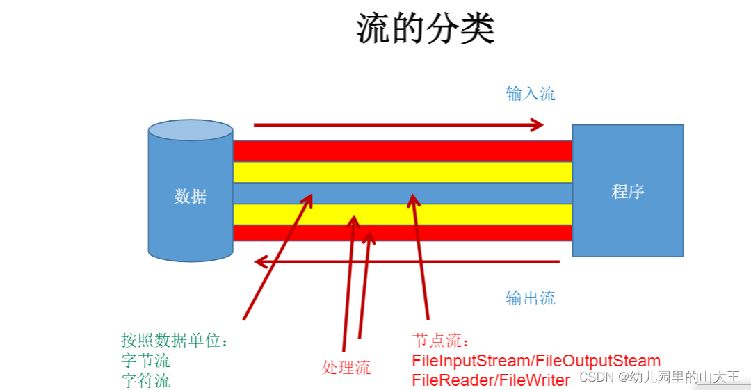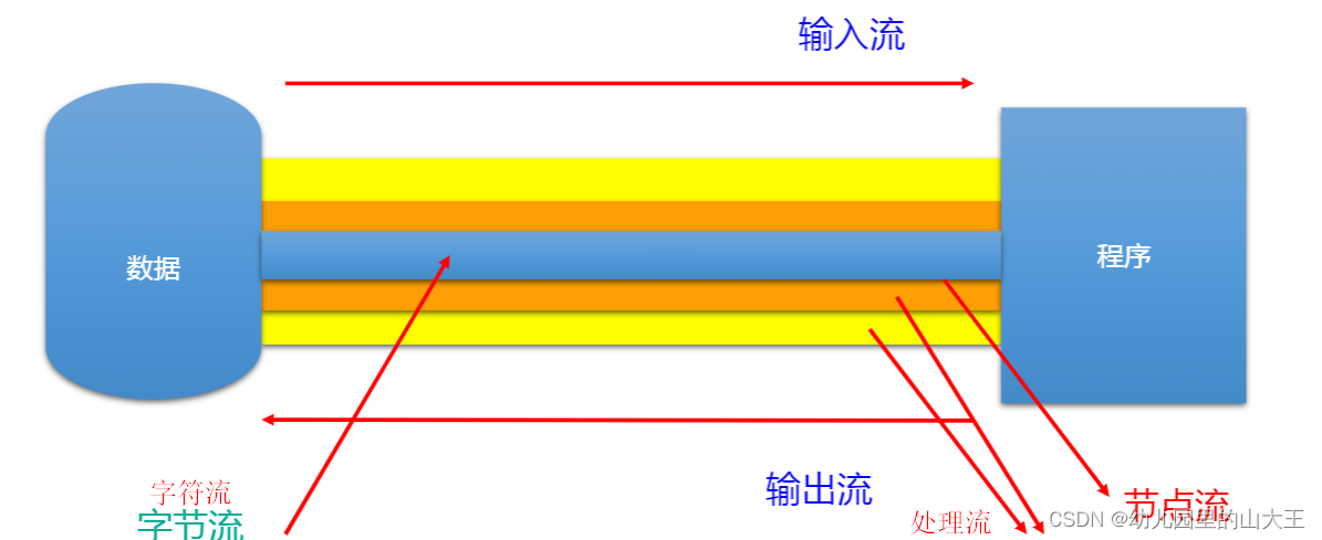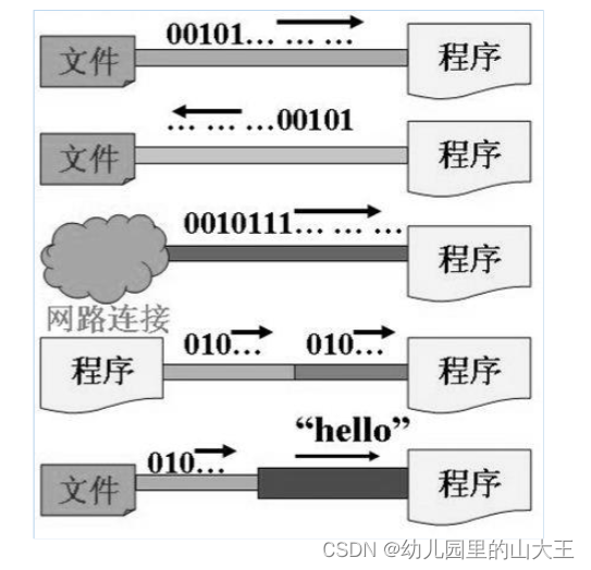 1、输入流input:读取外部数据(磁盘、光盘等存储设备的数据)到程序(内存)中