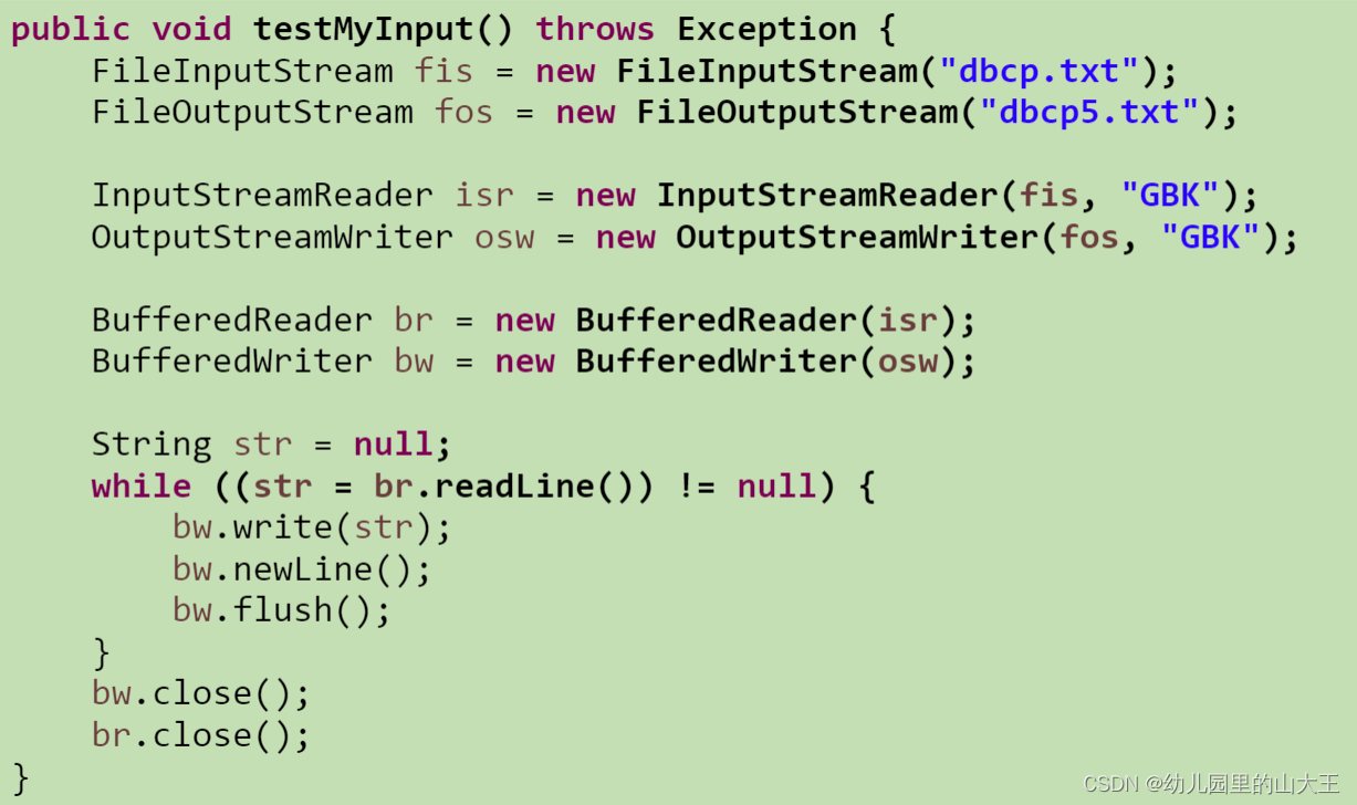 - 在读取文件时,必须保证该文件已存在,否则报异常。