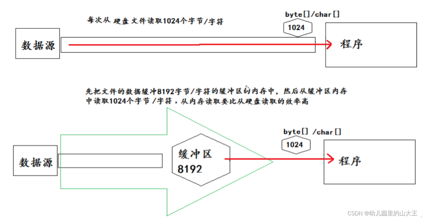 为了提高数据读写的速度,Java API提供了带缓冲功能的流类,在使用这些流类时,会创建一个内部缓冲区数组,缺省使用8192个字节(8Kb)的缓冲区