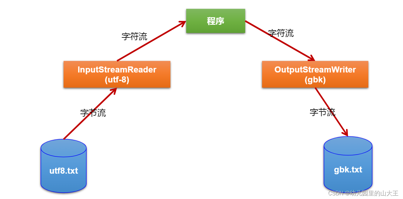 1、InputStreamReader:实现将字节的输入流按指定字符集转换为字符的输入流。需要和InputStream“套接”。