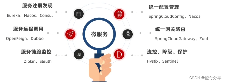 (1)、Eureka:注册中心将微服务的信息注册到注册中心,然后通过注册中心找到对应需要请求的服务ip以及端口号;