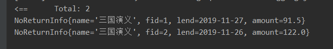 发现amount中始终为0,但是我在navicat中使用同样的sql语句明明是对的,于是我想问题肯定出在存到实体类这个环节。其中name,fid,lend都是和数据库中的字段一一对应的,而(curdate()-a.lend)*b.price这个虽然也是double,但它是临时产生的,所以必须要设置一个于实体类属性名相同的名字。到此这个问题就很简单了,直接在后面加上as amount就ok了,下面是改正后的语句: