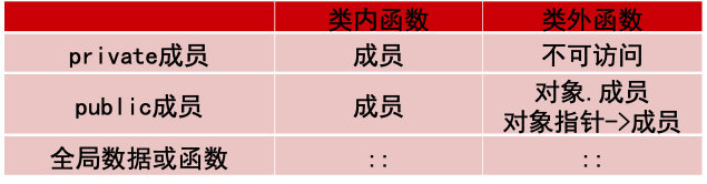 在类定义的{ }中的区域为类作用域,在作用域中说明的标示符只在类中起作用。