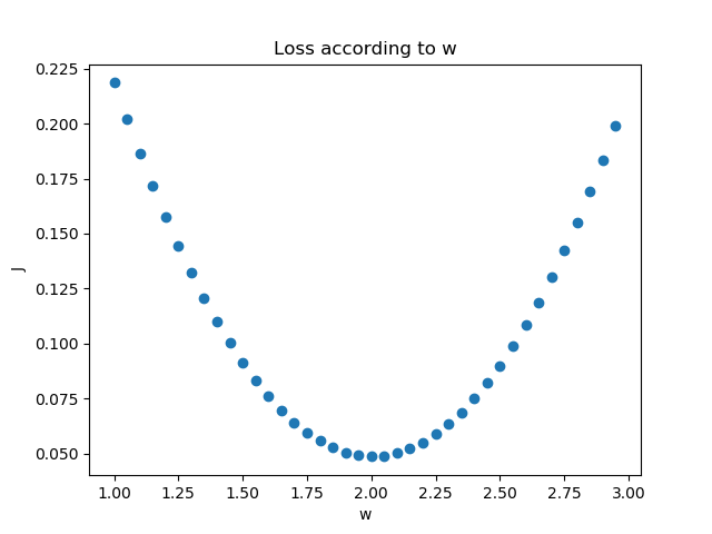 我们假设该拟合直线的方程是y=2x+3,当我们固定b=3,把w值从1到3变化时,看看损失函数值的变化如图3-6所示。