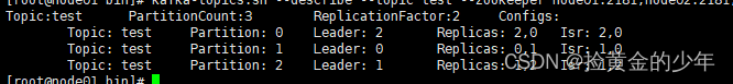 kafka-topics.sh --describe --topic test --zookeeper node01:2181,node02:2181,node03:2181