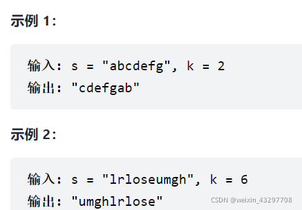 字符串的左旋转操作是把字符串前面的若干个字符转移到字符串的尾部。请定义一个函数实现字符串左旋转操作的功能。比如,输入字符串"abcdefg"和数字2,该函数将返回左旋转两位得到的结果"cdefgab"。