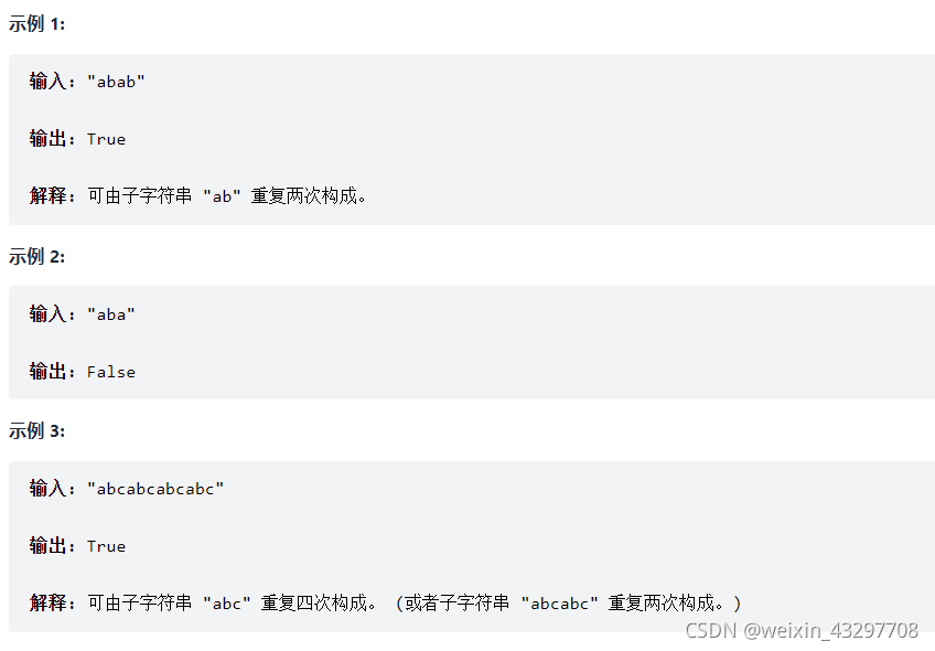 给定一个非空的字符串,判断它是否可以由它的一个子串重复多次构成。给定的字符串只含有小写英文字母,并且长度不超过10000。