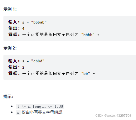 给你一个字符串 s ,找出其中最长的回文子序列,并返回该序列的长度。