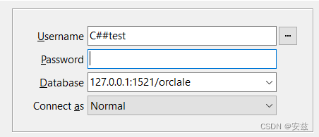 用户名和密码就是刚才设置好的,database后面跟的就是安装时设置的全局数据库名,默认是orcl,这里我的是改了的,和前面的截图是不同的,你如果没有改的话输入的就是orcl。