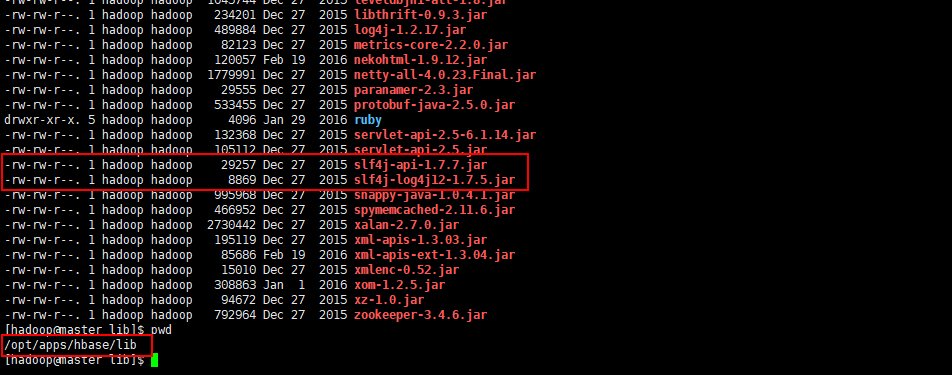 可以将/opt/apps/hbase/lib和/opt/apps/hadoop/share/hadoop/common/lib两个目录下的slf4j的版本统一一下,都是用同一个版本的就可以了