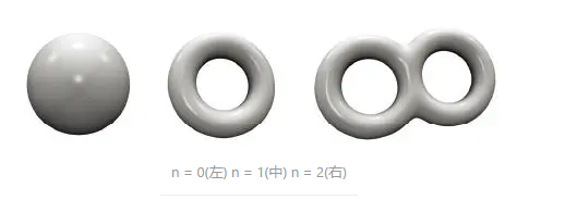 而对于一般的闭合曲面来说亏格n就是几何体上洞眼的数目