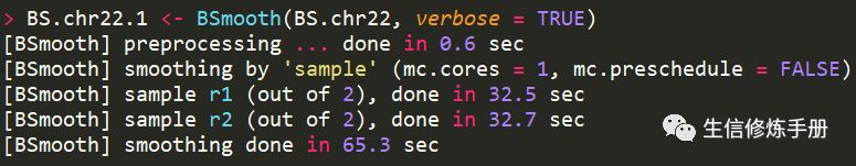 BS.chr22.1 <- BSmooth(BS.chr22, mc.cores = 2, verbose = TRUE)