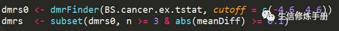 通过dmrFinder 函数进行差异甲基化分析, 代码如下: