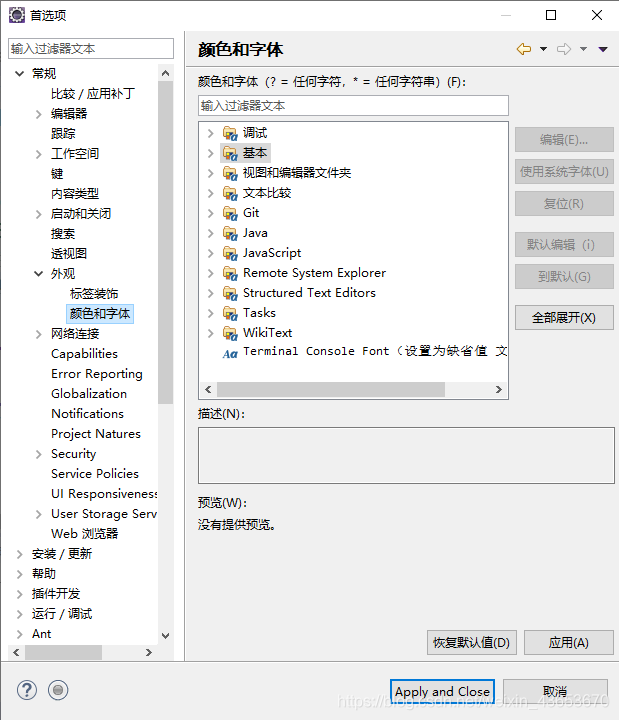 3、右边颜色和字体中选择“基本” -- “文本字体” ,点击“编辑”