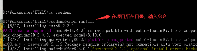 13、安装项目依赖项cnpm,并运行项目(若上一步选择了npm依赖,则此步跳过)