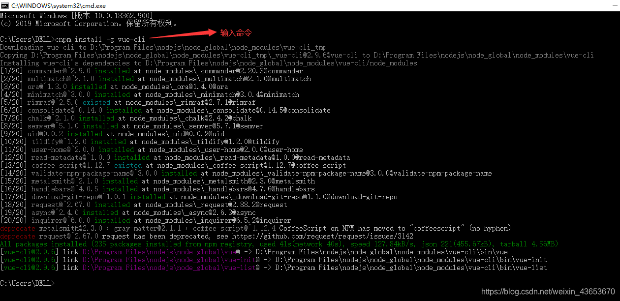 为方便使用,所以优先使用淘宝的镜像服务器对依赖包module进行安装,因此首先安装cnpm(国内镜像包可能会有收录延时,找不到最新的包,不过基本没什么影响)