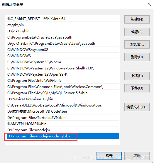 cnpm安装之后,不会自动添加环境变量配置,此时执行cnpm命令会提示“'cnpm' 不是内部或外部命令,也不是可运行的程序或批处理文件”;需要将nodejs的配置添加到环境变量PATH中
