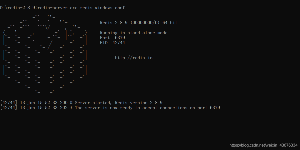 ④ 在文本中输入【redis-server.exe redis.windows.conf】保存