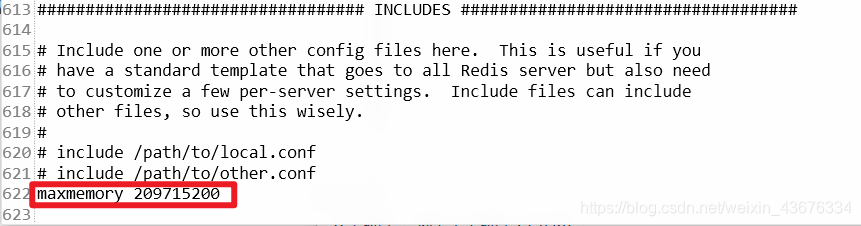 ② 在文件【redis.windows.conf】中的最后添加【maxmemory 209715200】