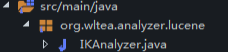 首先 先找到 IKAnalyzer这个类因为需要修改它的源代码所以要去模仿它(包名类名内容需一致) 由于java遵守就近原则 它就不会去加载jar包里的内容了会以当前类为主 本身的Ik是支持4.7.2的所以当前这个类也是能编译通过的