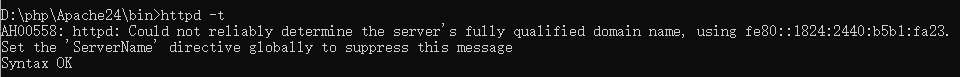 可以看到还是有一个警告,再次打开httpd.con,设置如下