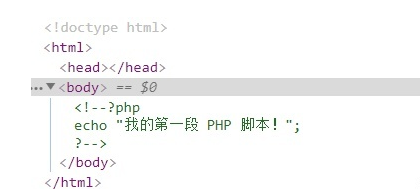 有意思的是,这段代码如果是.php后缀,那么使用浏览器打开时会显示源代码;如果是html后缀,直接用浏览器打开时,Chrome会自动给php代码加上注释: