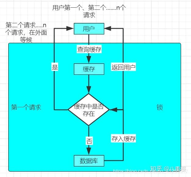 当用户出现大并发访问的时候,在查询缓存的时候和查询数据库的过程加锁,只能第一个进来的请求进行执行,当第一个请求把该数据放进缓存中,接下来的访问就会直接集中缓存,防止了缓存击穿。
