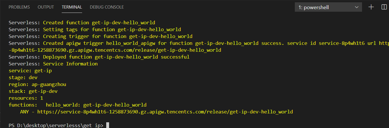 部署成功后打开上面的 ANY 访问路径,就可以看到自己的IP