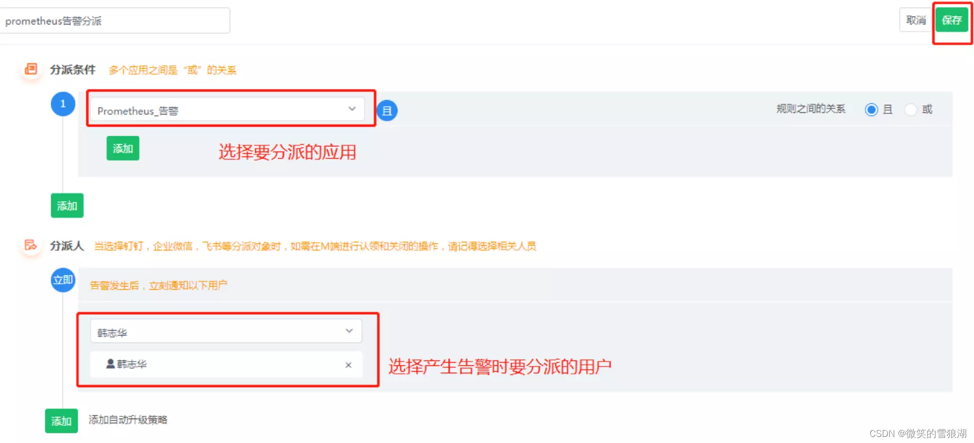 (2). 填写“分派策略名称”---选择“分派条件”---选择“分派人”—点击“保存”;