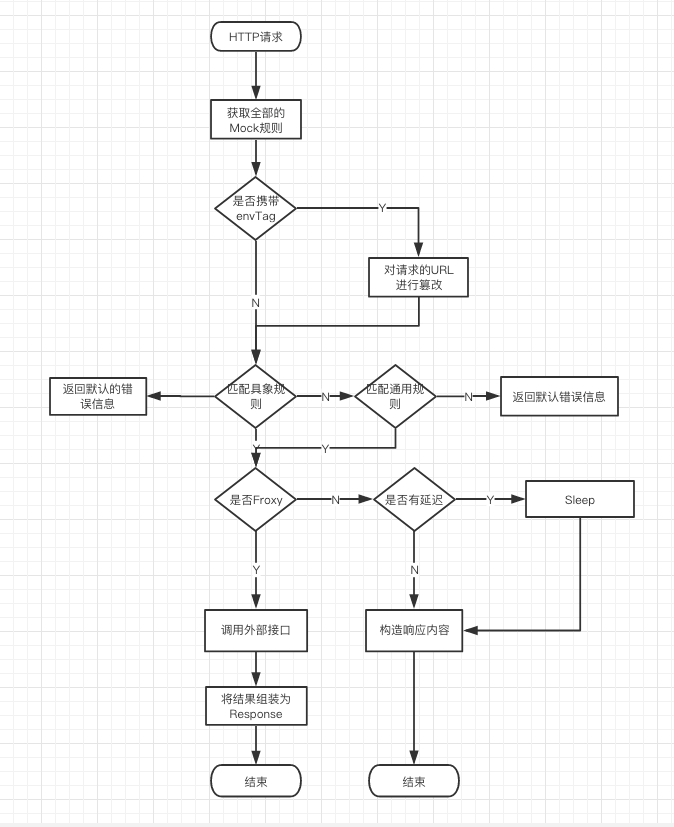 3. 规则匹配 ,根据请求的 URL 对规则进行匹配,最终可能匹配多条规则。将匹配到的规则分为具象场景规则和通用场景规则两组。对具象场景的 MOCK 规则根据请求参数进行匹配,如果命中则返回。对通用场景的 MOCK 规则根据请求参数进行匹配,如果命中则返回。